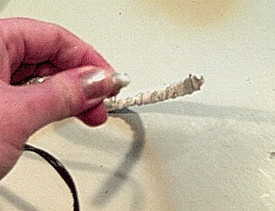 1. Start by folding the wire ribbon under and then apply a bit of glue.